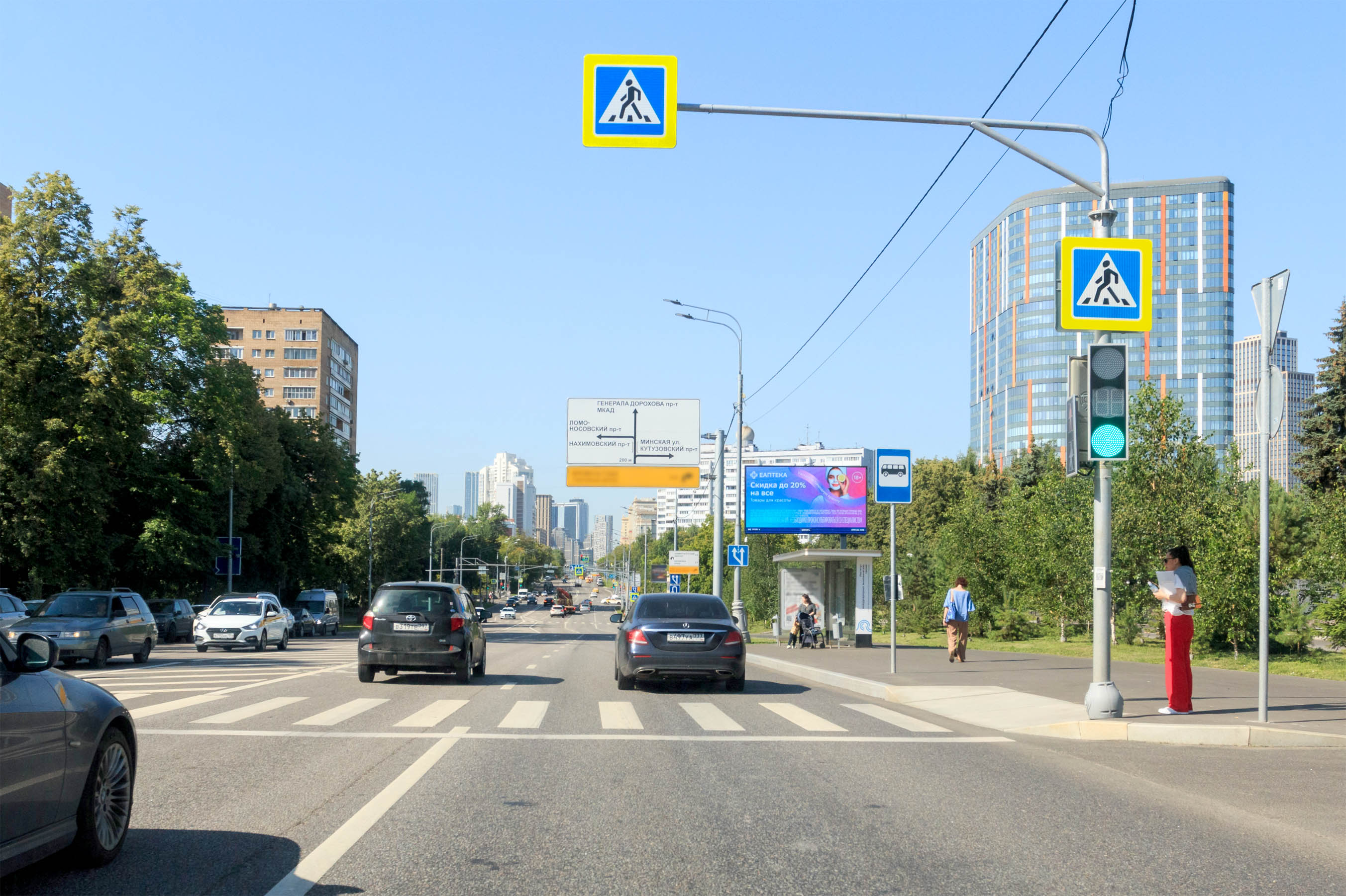 Мосфильмовская ул. 11к1, 270 м после Х с Университетским проспектом, (светофор)