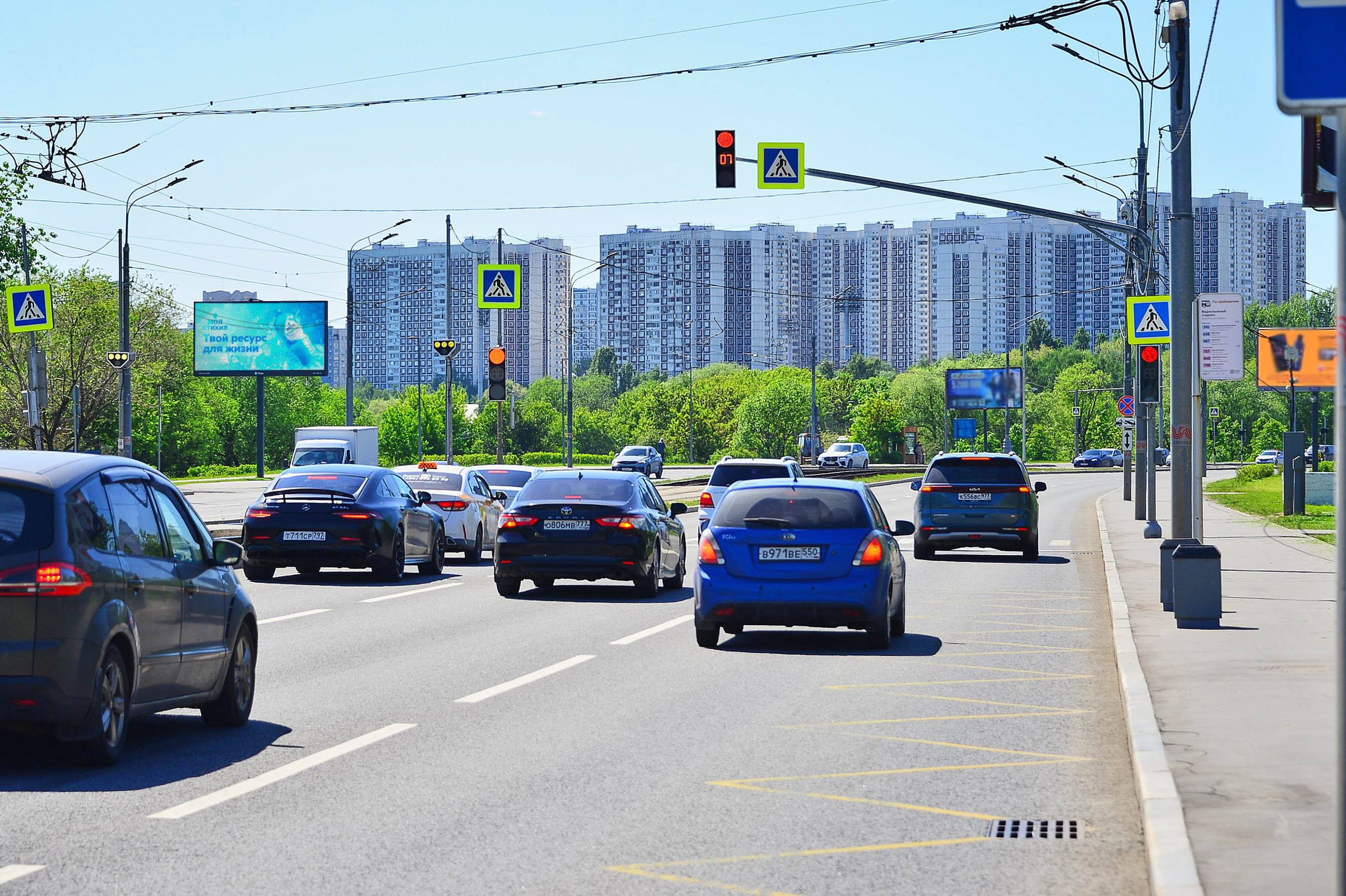 Строгинское шоссе, четная сторона, 330 м до Х с ул. Исаковского, (светофор)