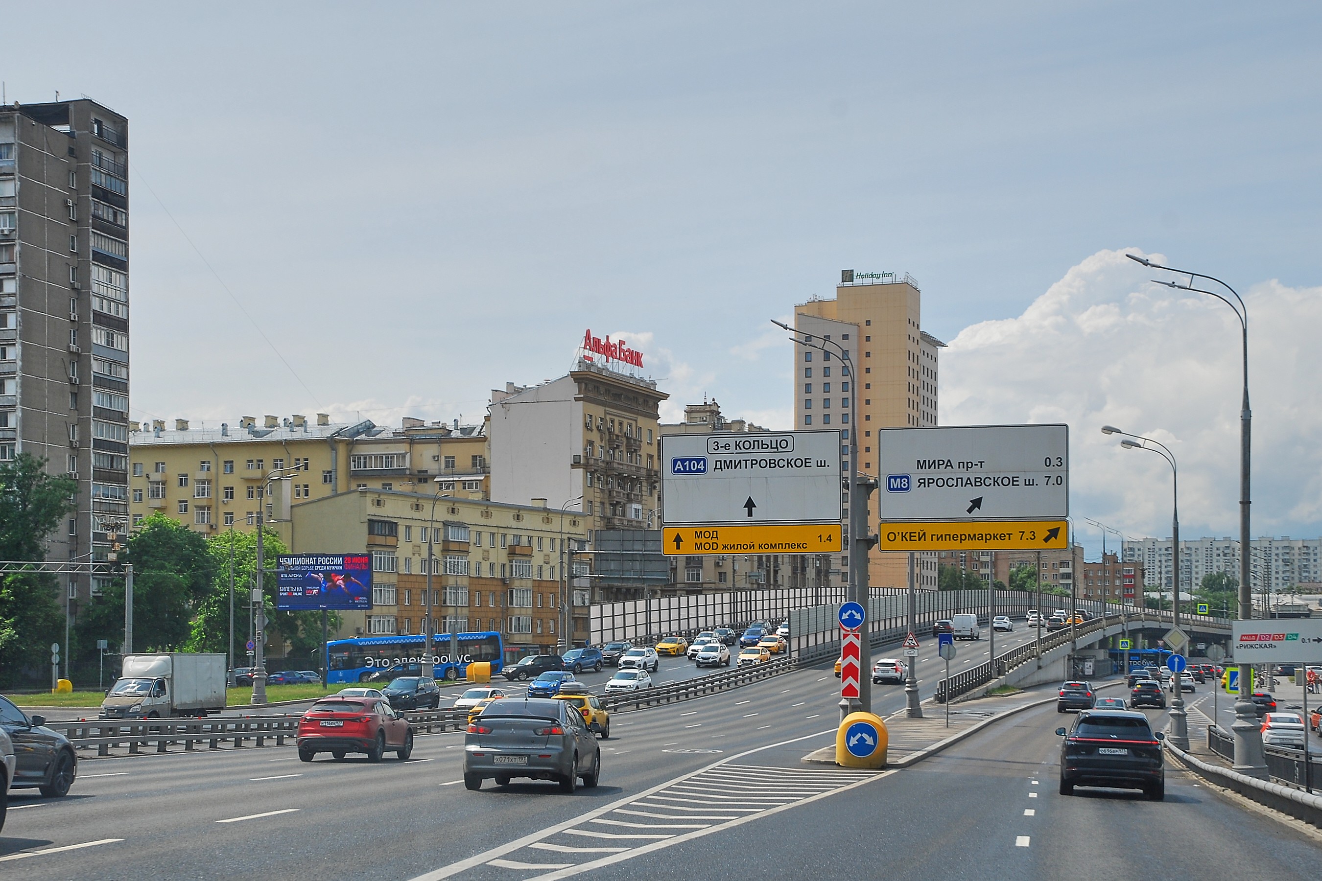 ТТК, внутренняя, Новорижская эстакада, съезд на проспект Мира, (м. "Рижская")