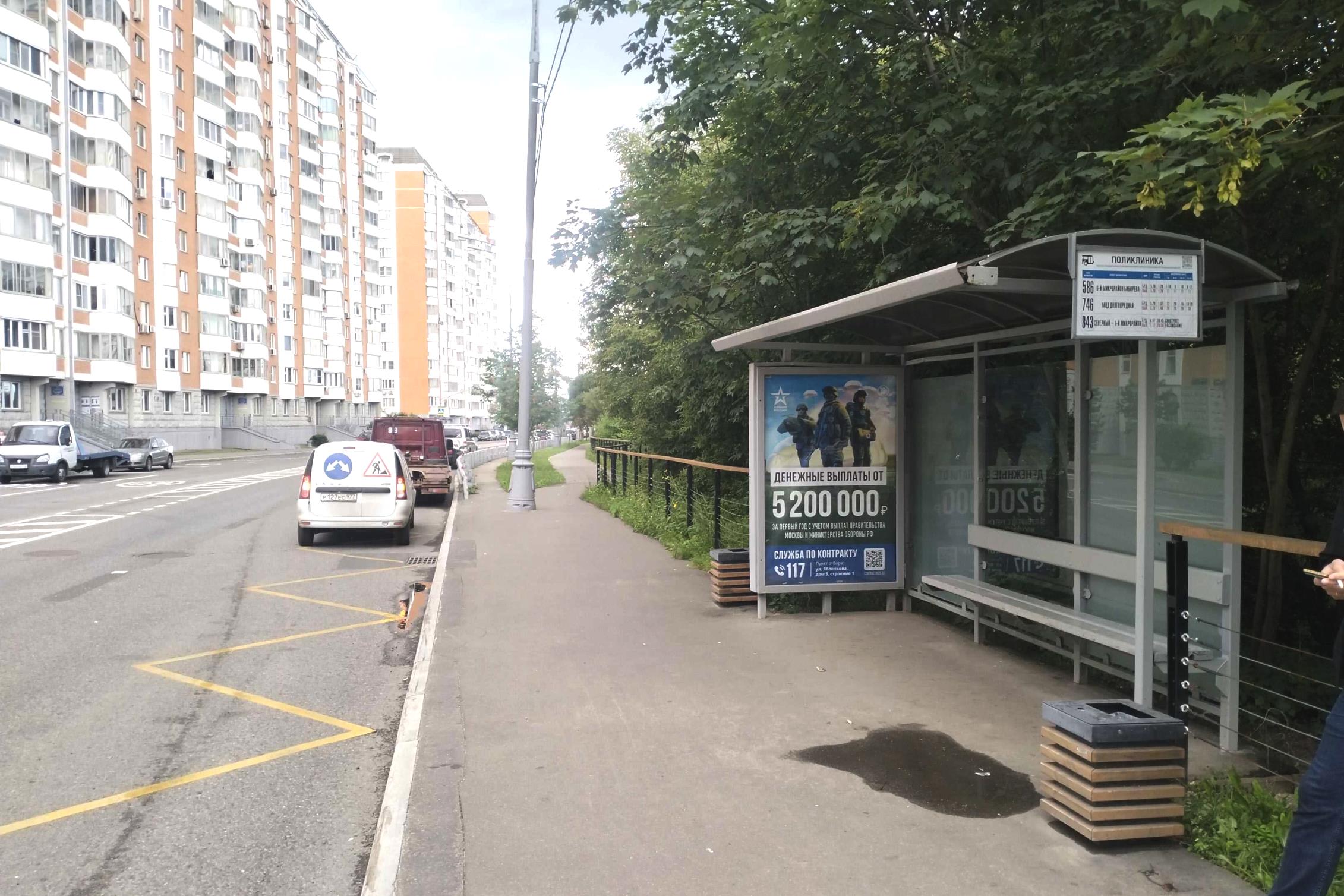 Академика Алиханова ул., 400 м до Х с Долгопрудненским шоссе - ост. "Поликлиника"