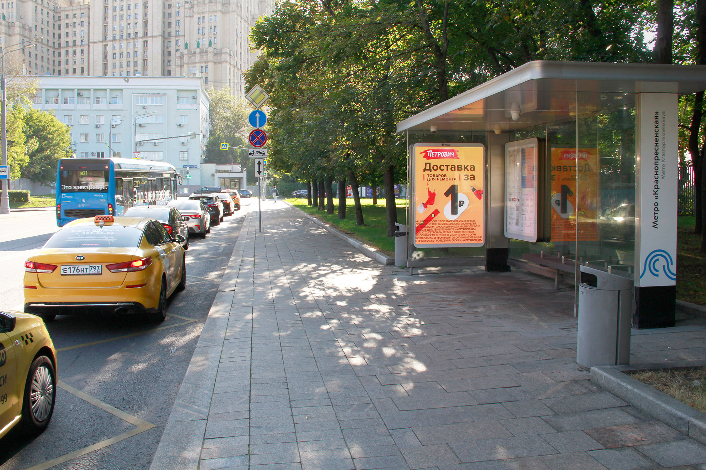 Заморенова ул., нечетная сторона, 100 м до Х с ул. Конюшковская - ост. "Метро Краснопресненская", (светофор)