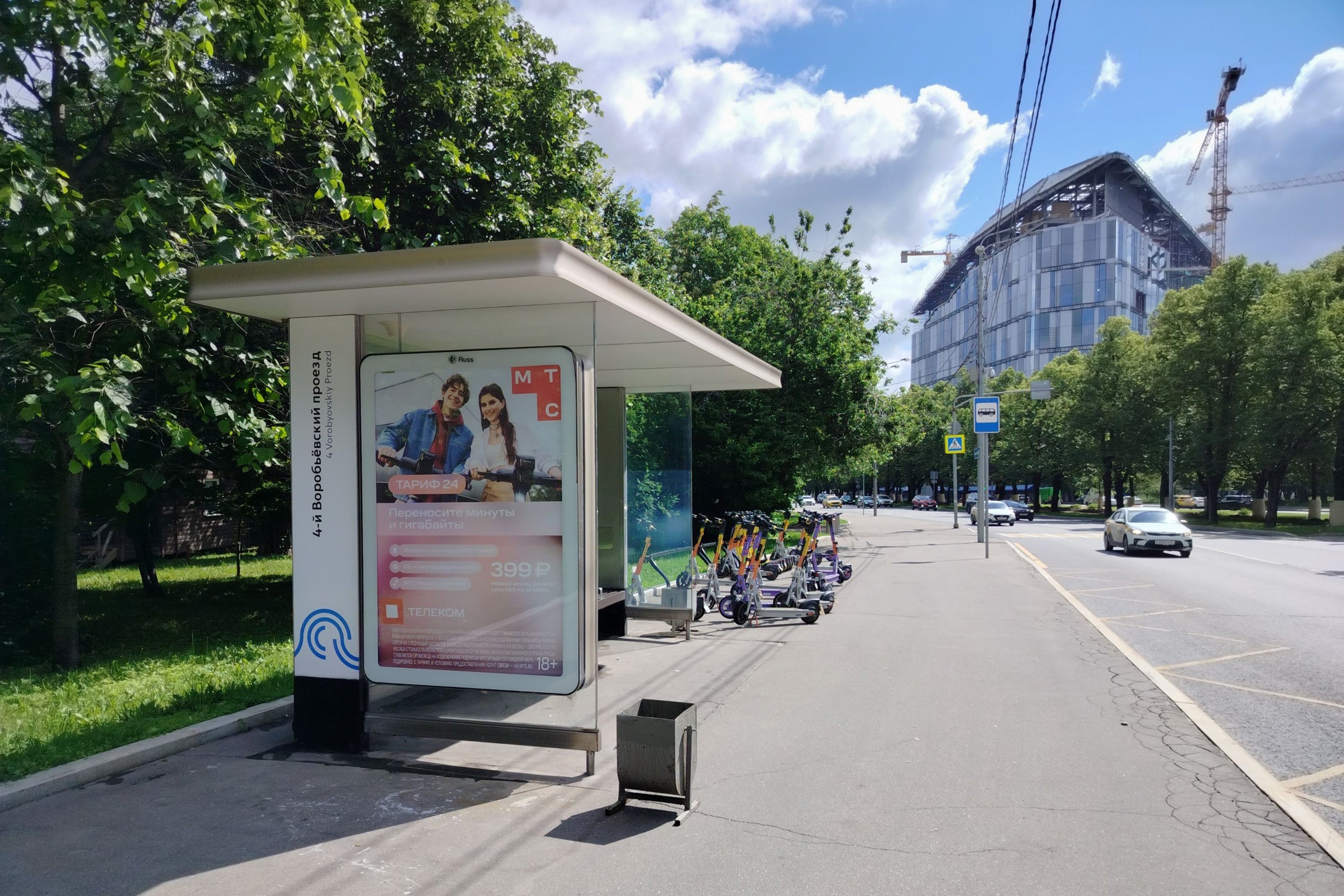 Косыгина ул., четная сторона, 350 м до Х с проспектом Вернадского - ост. "4-й Воробьевский проезд"
