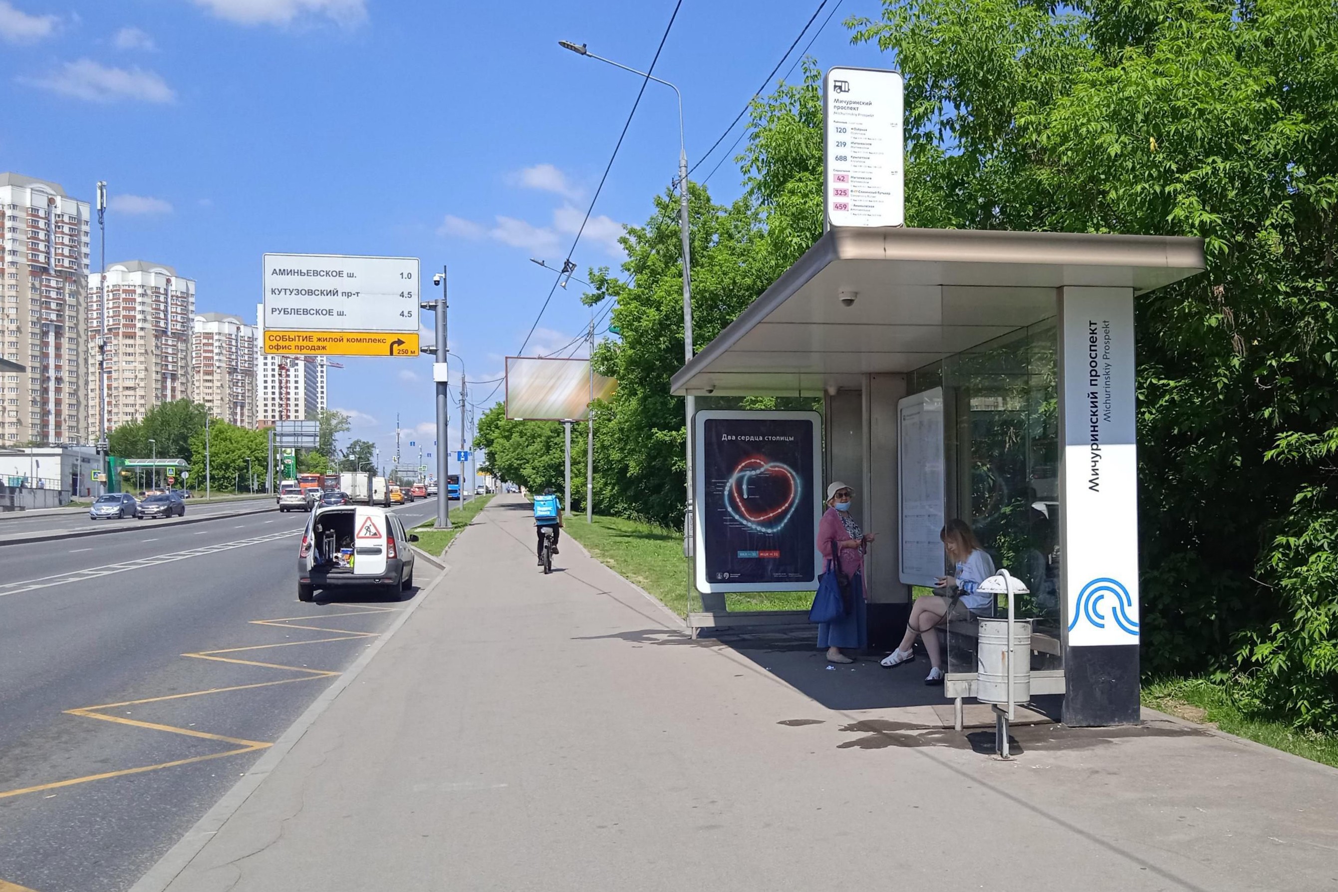 Лобачевского ул., четная сторона, 120 м после Х с Мичуринским проспектом - ост. "Мичуринский проспект"