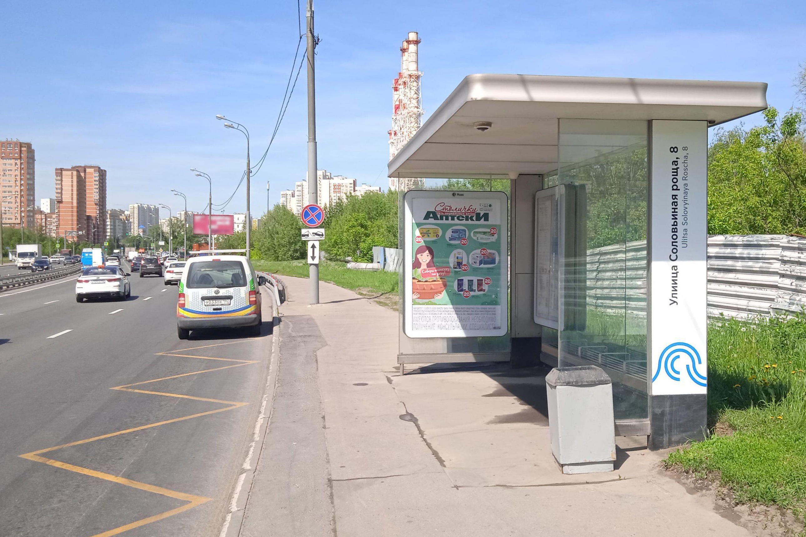 Новокуркинское шоссе, четная сторона, 250 м до Х с Нагорным шоссе - ост. "Улица Соловьиная Роща, 8", (светофор)