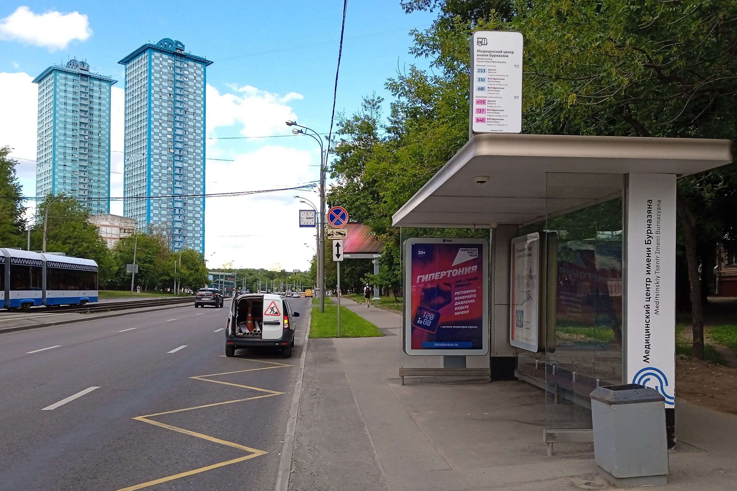 Новощукинская ул. 5 - ост. "Медицинский центр им. Бурназяна", (светофор)